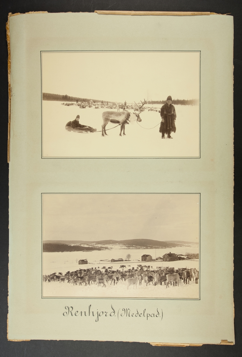 Ark med två monterade fotografiska motiv från Medelpad. Påskrift: "Renhjord". L.A. 1306