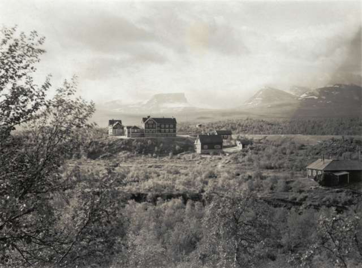 Abisko turiststation vid Torne träsk. I bakgrunden Tjuonavaggi (även kallad Lapporten).