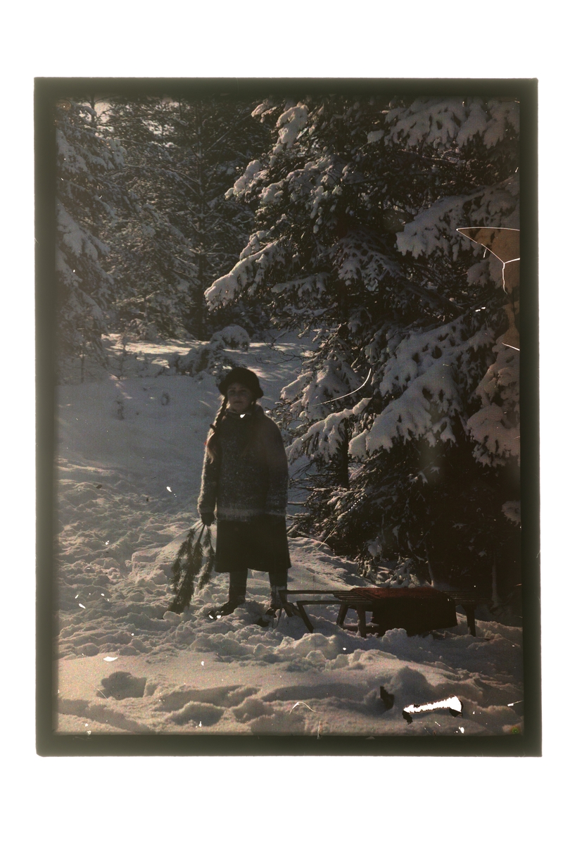 Flicka med kälke.
