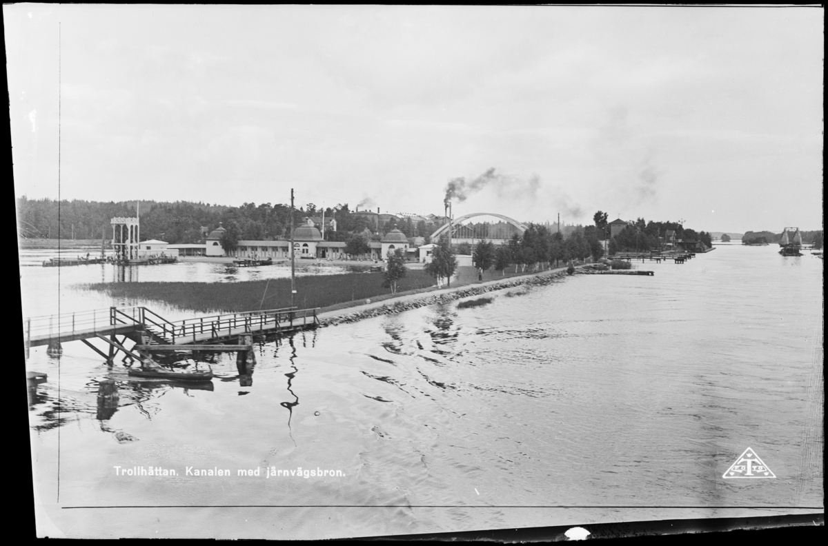 Trollhättan. Kanalen med järnvägsbron