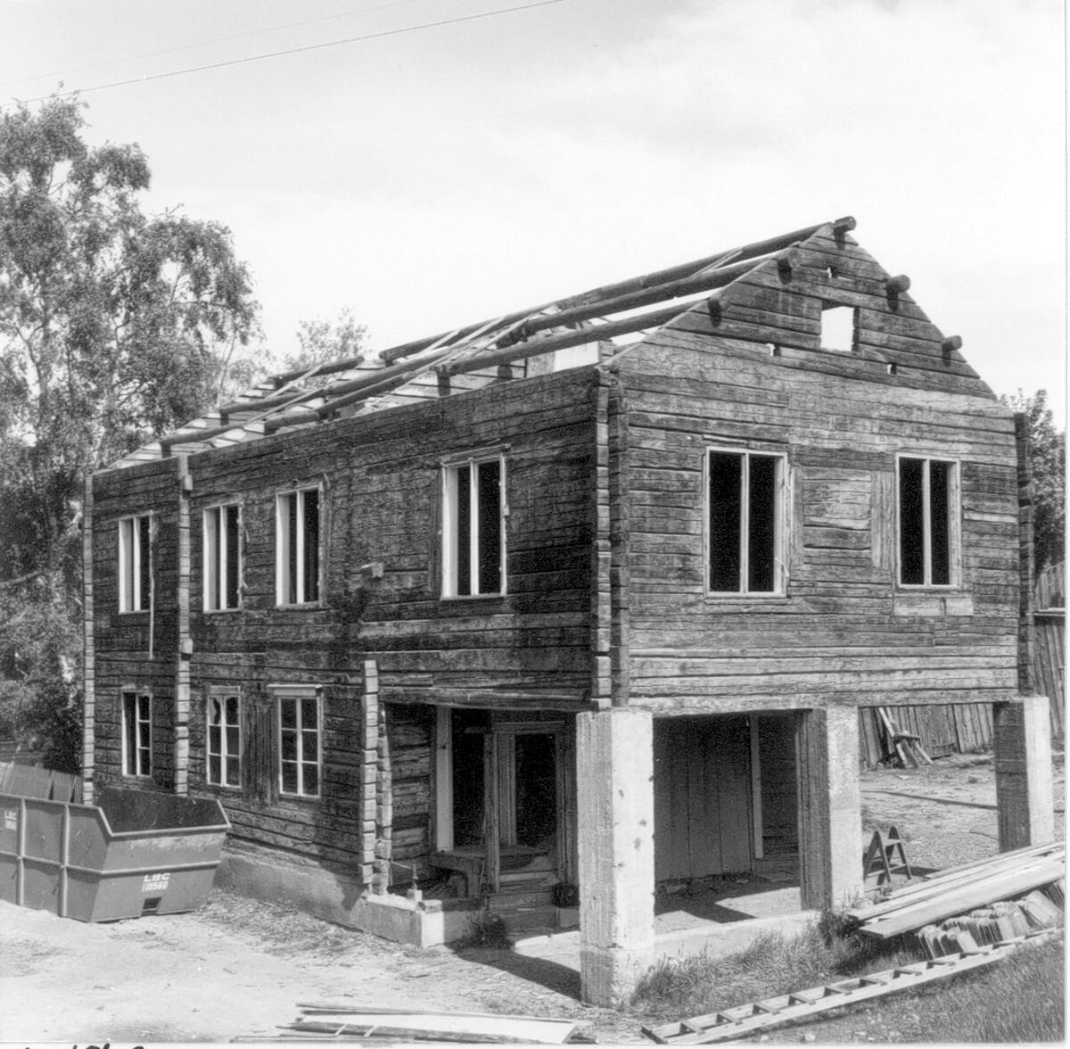 Rivningshus. Timmervägg mot väster och öster