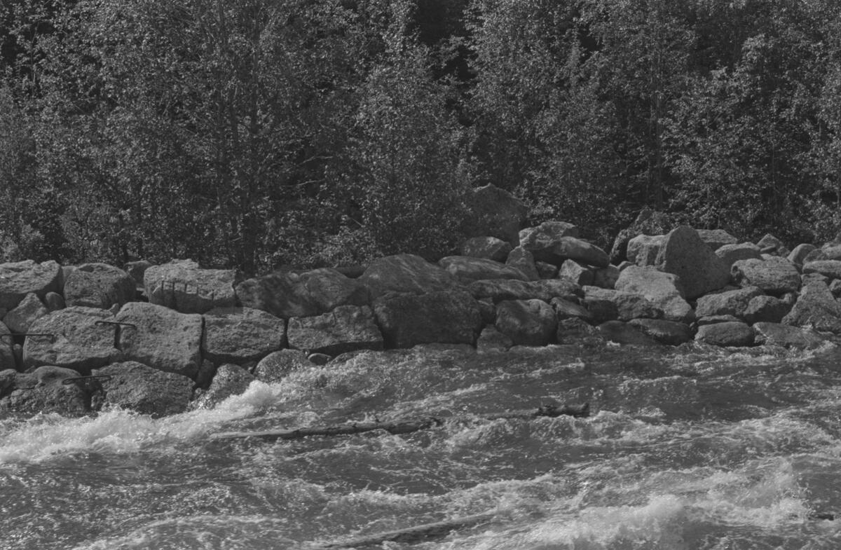 Nedanför Ramsele kraftverk. Detalj av den lägre kilstensmuren.