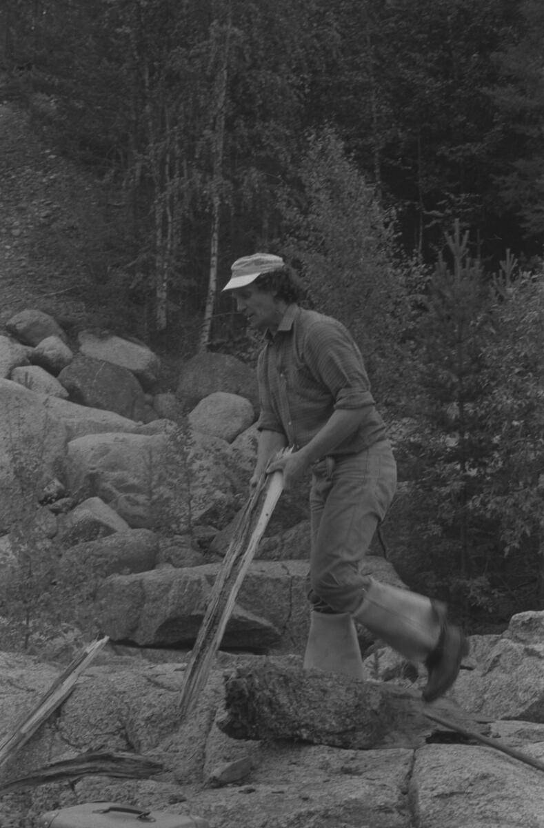 Nedanför Ramsele Kraftverk. Fika efter brötlossning. Per-Adil samlar ved.