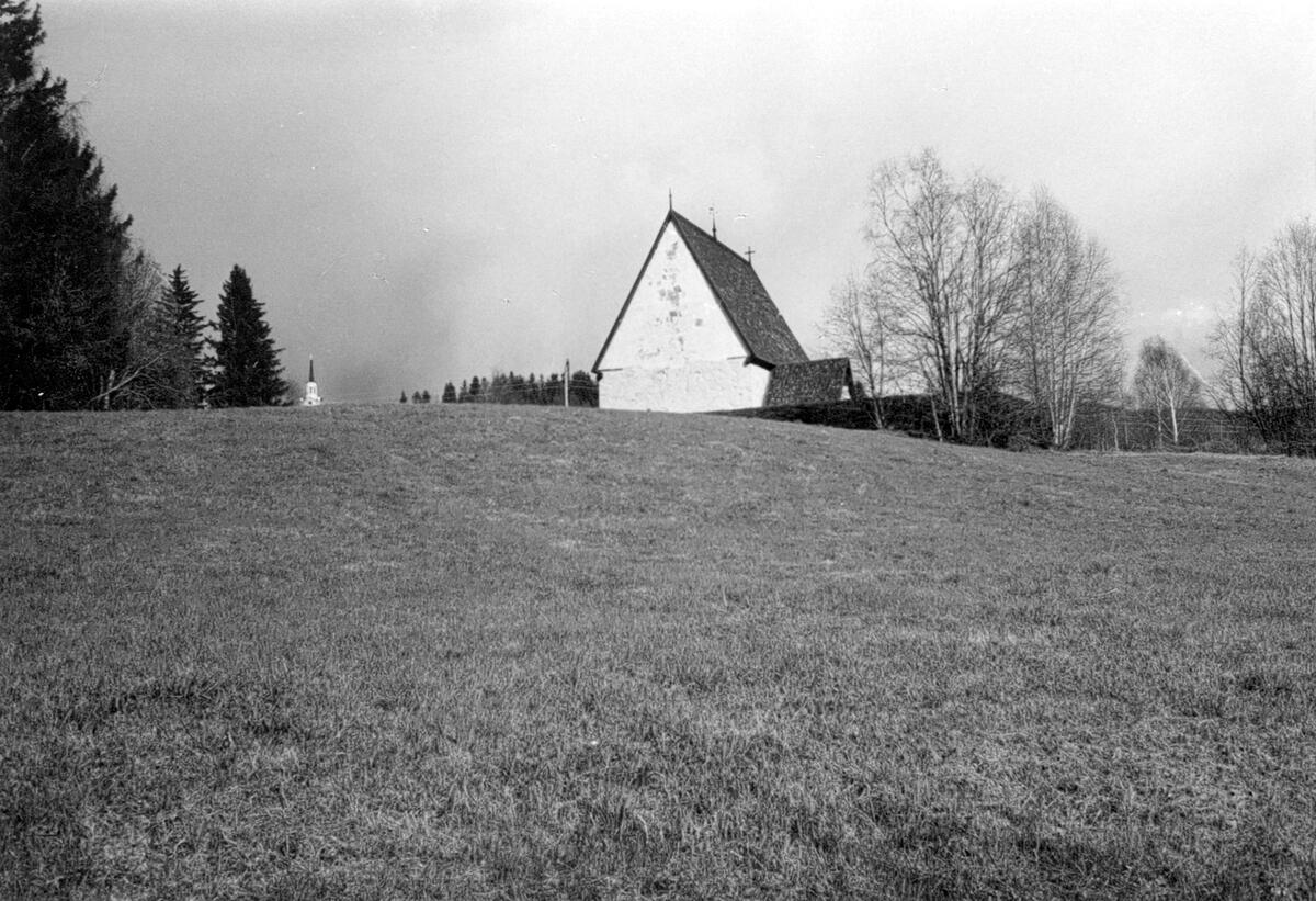 Titel: Lidens gamla kyrka bestod ursprungligen av en enkel rektangulär byggnad uppförd vid medeltidens slut (enl traditionen på 1480-talet). Vapenhus och sakristia tillkom relativt snart efter kyrkans byggande. En äldre kyrka antagligen av trä har sannolikt funnits på platsen. Väggarna är byggda av sten som sedan 1925 är vitputsade. Vid den nya kyrkans byggande 1858 raserades valven i den gamla kyrkan. Den stod utan underhåll till 1911 då konserveringsarbeten igångsattes. Kyrkan täcktes då av ett nytt spånklätt yttertak. Invändigt fick kyrkan ett tunnvalv av trä. Endast fragment återstår av målningarna från 1500-talets mitt eftersom valven är borta. På väggarna finns emellertid en del målningar som är framtagna. En ny uppförd klockstapel efter den gamla modellen är på plats.En granhäck är planterad där bogårdsmuren fanns, men en timrad stigport är bevarad. Interiören präglas av 1700-talet med altarprydnad och predikstol. Av medeltida inventarier finns bl a krucifix från 1200-talet och 1400-talet, madonnor från 1200-talets början och 1400-talet den senare stående i ett skåp (sex medeltida föremål är borta efter en stöld 1994).