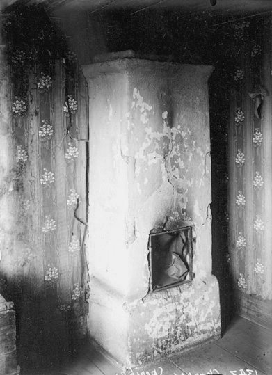 Interiör bostad, kakelugn på vinden i Skarpa.