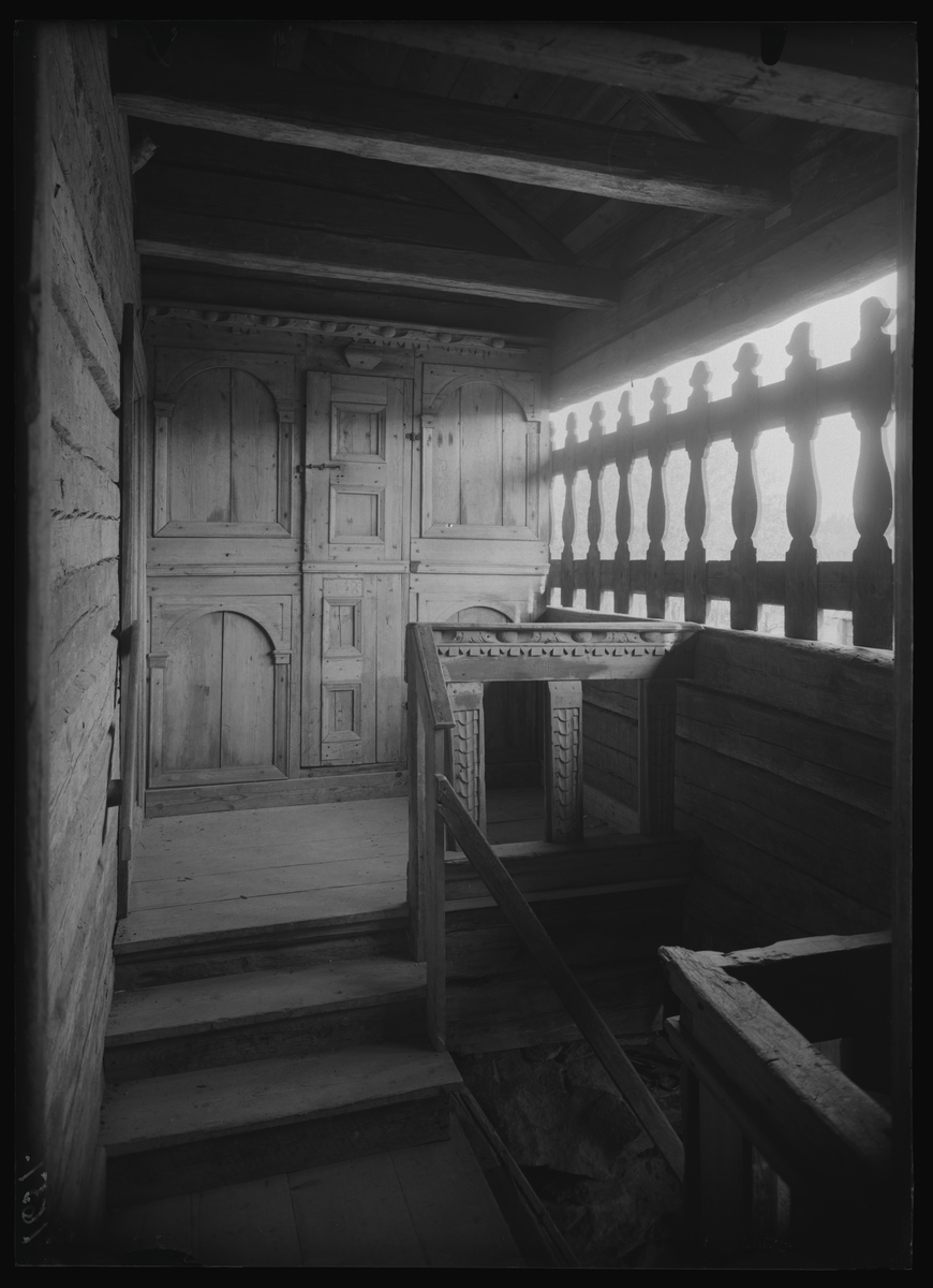 Räcke och skåp i Hemmingsbobodens svale på Vallby friluftsmuseum i Västerås.