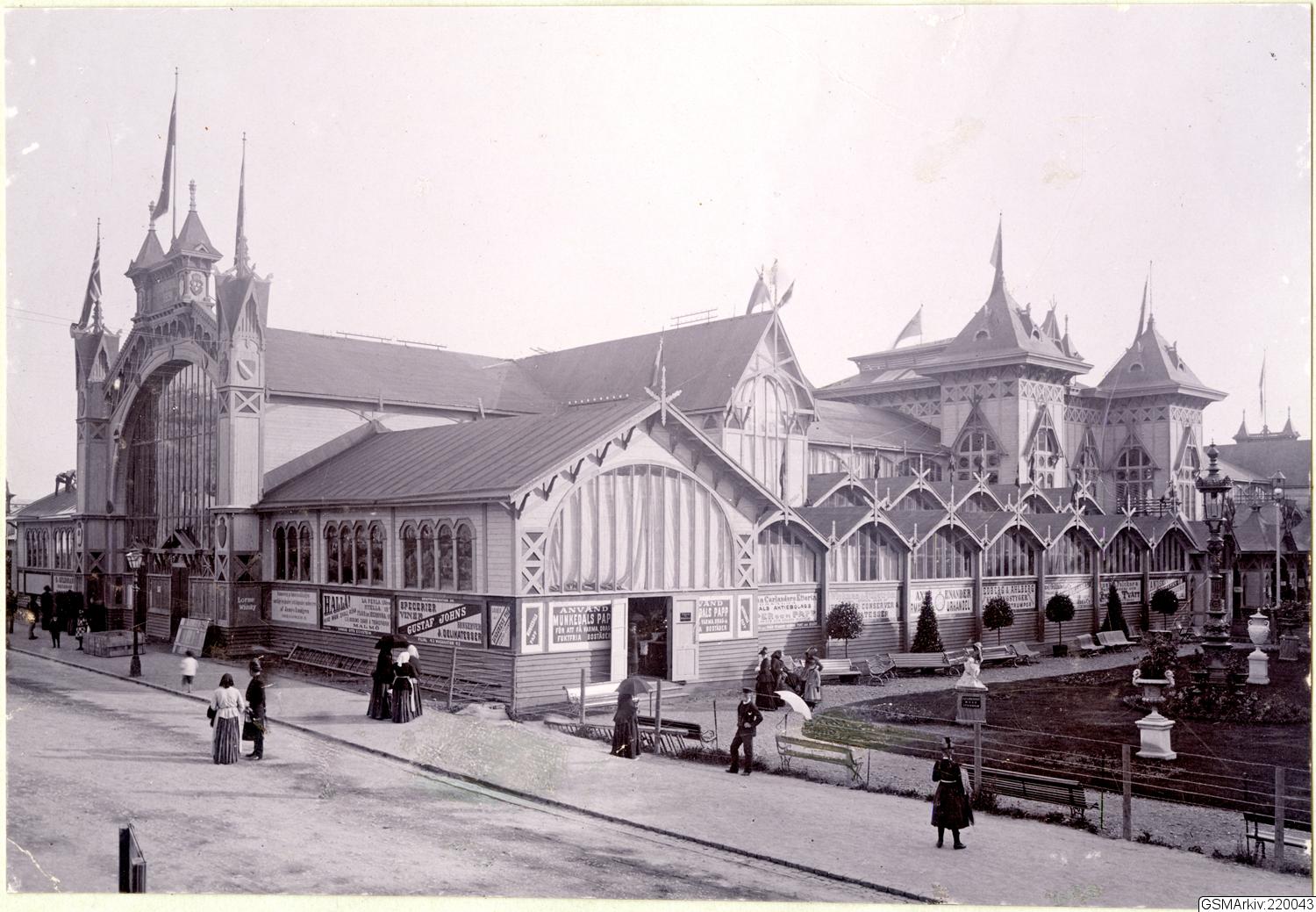 Industriutställningen 1891 på Heden, huvudbyggnaden, utställningen pågick mellan 1 juli och 15 september. Arrangör var Hantverks- och Industriföreningen.