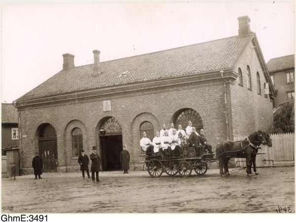 Avdelning av brandkåren i Majorna utanför stationen vid Kusttorget.