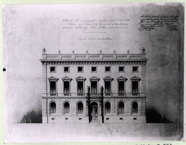 Ritning till nybyggnad av tomterna nr 62 i 5te och nr 15 i 6te roten vid hörnet av Norra och Östra Hamngatorna.
