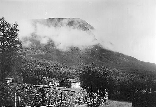 Kvikkjokk, Nuanjes. Erik Holmhams gård och fjället Anskaire.