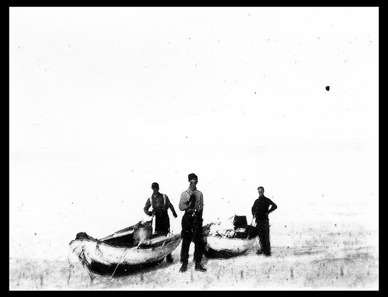 Gunnar till vänster med sin julle, övriga ej identifierade.
