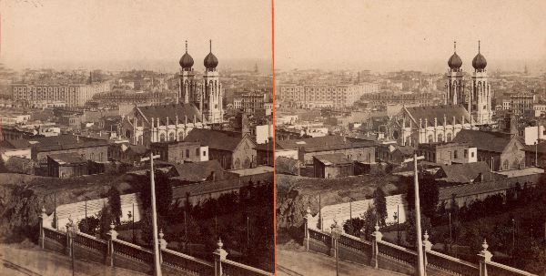 Palace Hotel och en judisk synagoga. (Montgomery street and Woodward's garden, S.F)