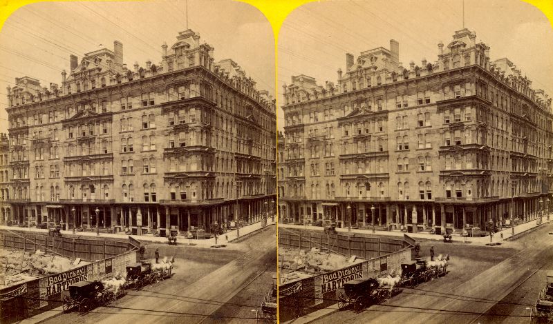 Stadsvy. "Sherman House" Corner Clark och Randolph Street. Chicago