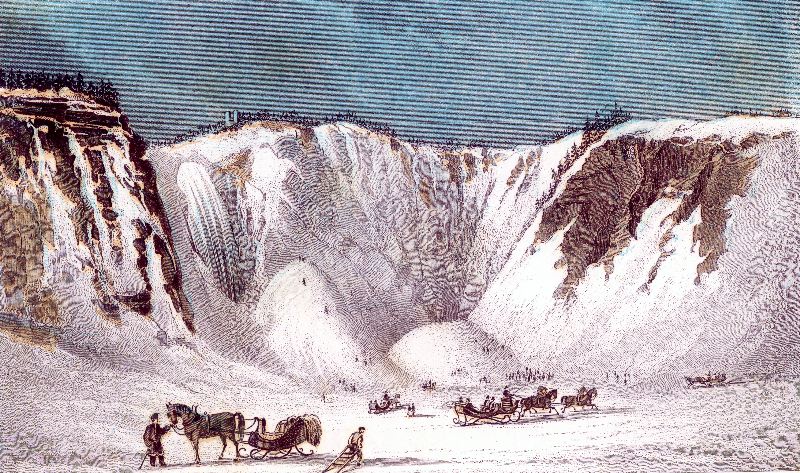 Ett avtryck av en målning. Falls of Montmorency in winter.