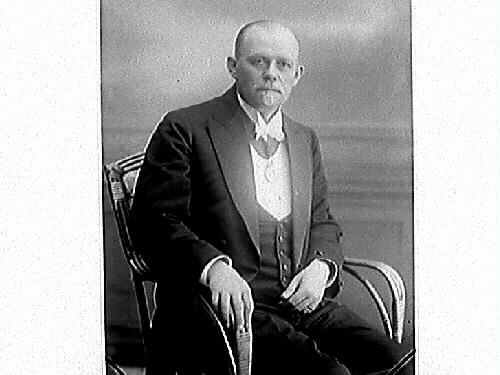Ateljéfoto av en sittande man med medalj om halsen. (Se även bild MR2_2031)