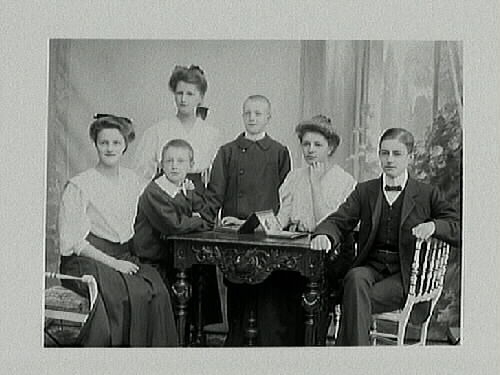 Syskonbild. Barnen Staffenburg, tre flickor och tre pojkar. Barnporträtt.