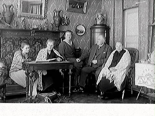 Nummer 2 från vänster är Mathilda Ranch, mannen till höger är Elof Ernwald som tog över fotoateljén 1922. Varberg, kv Bagaren, Prästgatan
