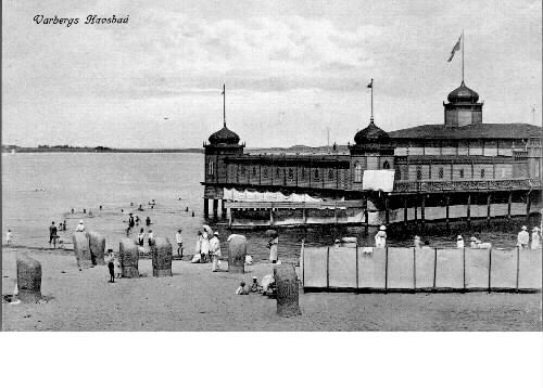 Barnens badstrand med solhytter och kallbadhuset i Varberg.