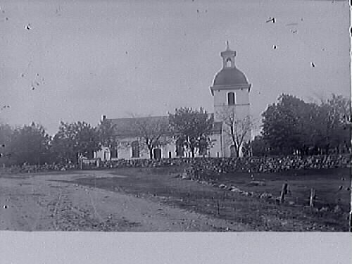 Eftra kyrka sedd från norr. Den gamla kyrkans torn står kvar och är från 1779 medan långhus och sakristia är från 1820-talet. Söder om kyrkan ligger kyrkbyn.