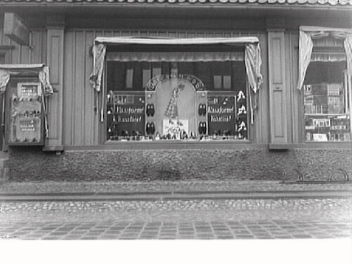 Skyltfönster till Svanbergs skoaffär. Varberg, Kv Färgaren, Drottninggatan 17.