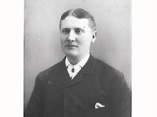 Porträtt, bröstbild, av handlanden Oscar Lindh, Varberg. Han gifte sig med fotografens syster Hulda 1891, men avled redan året därpå.