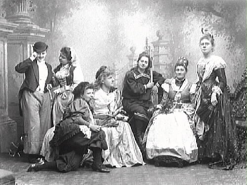 "Kostymgruppen". Maskerad, troligen Mathilda Ranchs släkt och vänner.