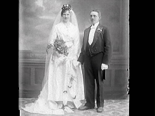 Brudpar. Lantbrukare Karl Bengtsson med makan Anna. Olovsgård (Olofsgård?) Grimeton.