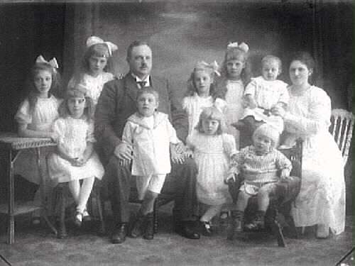 Ett par med nio barn avporträtteras.