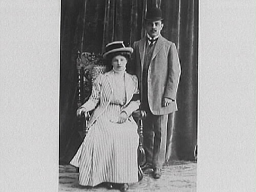 Ung kvinna och man. Hon ser ut att bära ett sorgband om vänster arm.