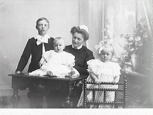 Barnsköterska eller liknande med tre barn i olika åldrar.