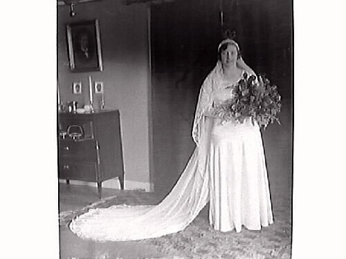 Brud med släp fotograferad i hemmiljö, Liedholm.