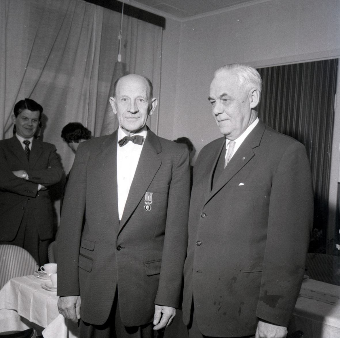 Medaljöverlämning och middag i Föra 10/2 1960. Postdirektör Axel Engers, Fru Berta Nilsson, Föra. Postmästaren Cir Ewers, Borgholm.