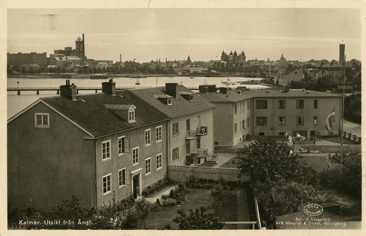 Lägenheter på Ängö. Text på bild: "Kalmar. Utsikt från Ängö."
