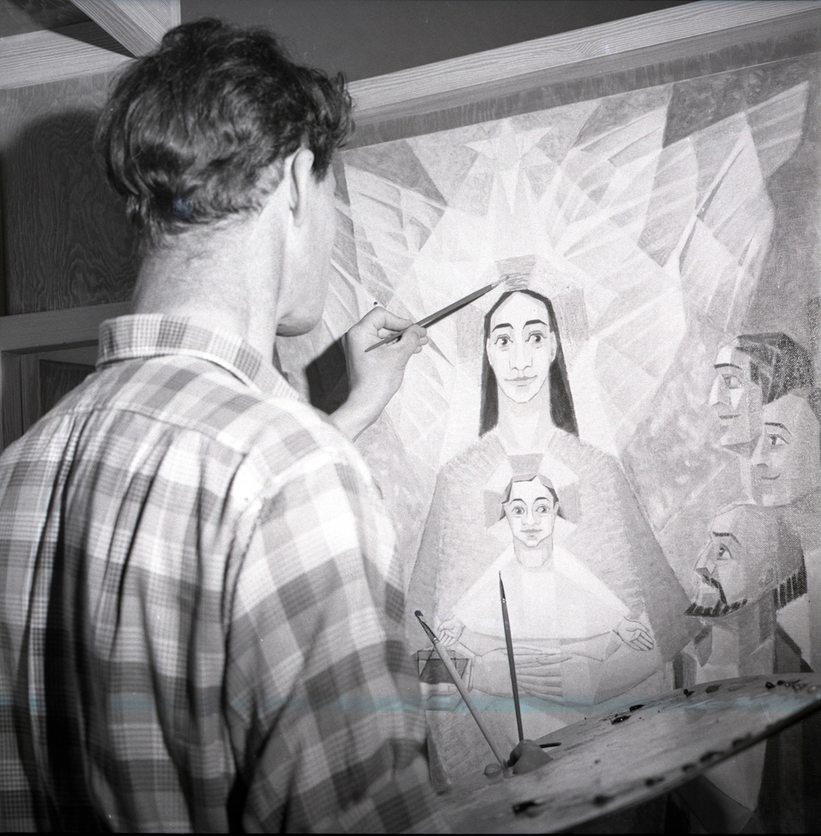 Hans Fagerström färdigställer triptyken i Persnäs kyrka.