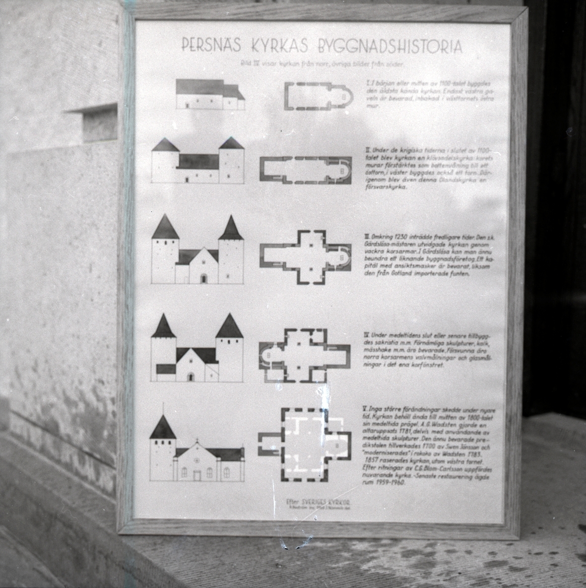 En plansch som redogör för Persnäs kyrkas byggnadshistoria.