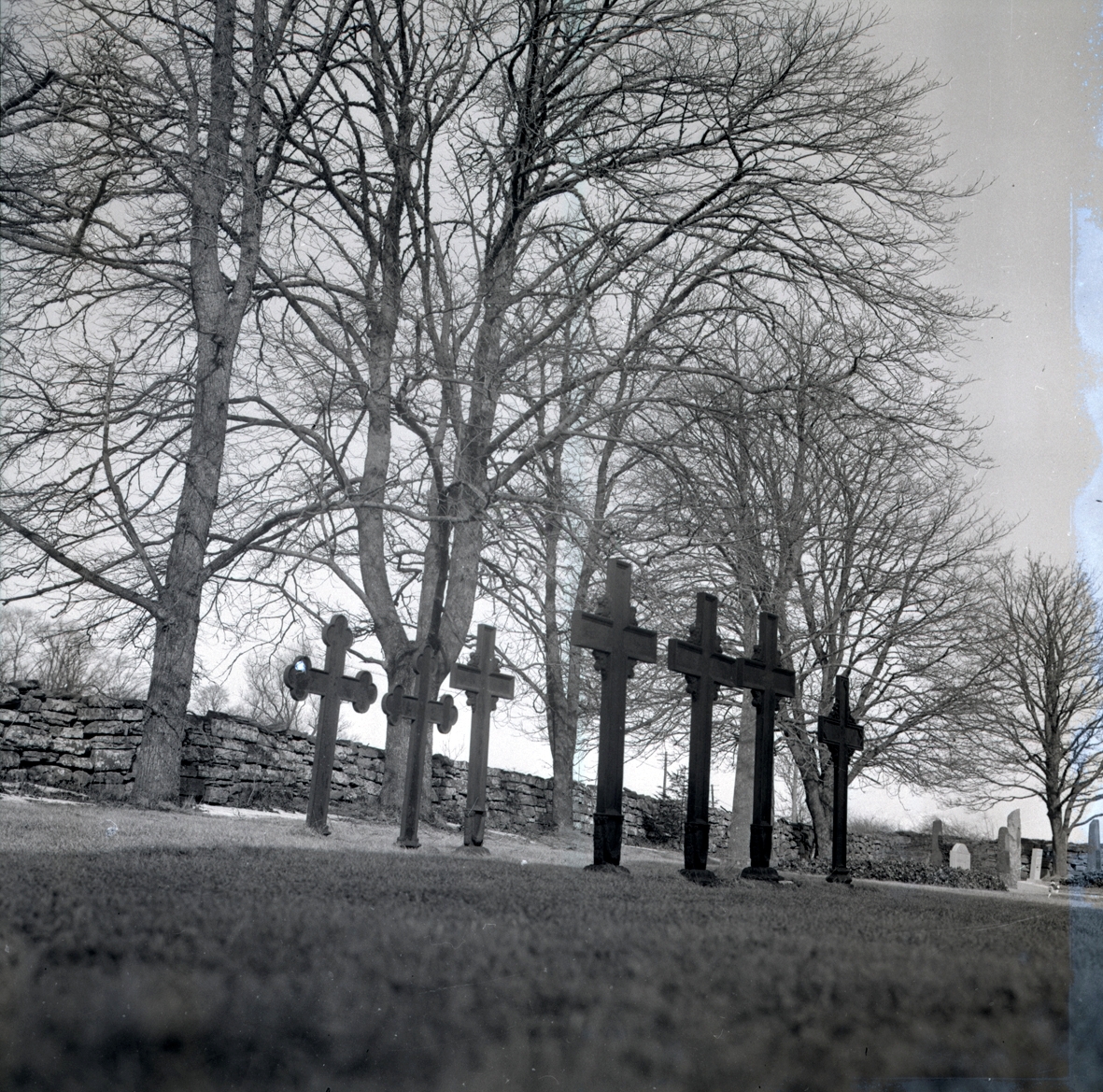 Svarta järnkors på Löts kyrkogård, september 1957.