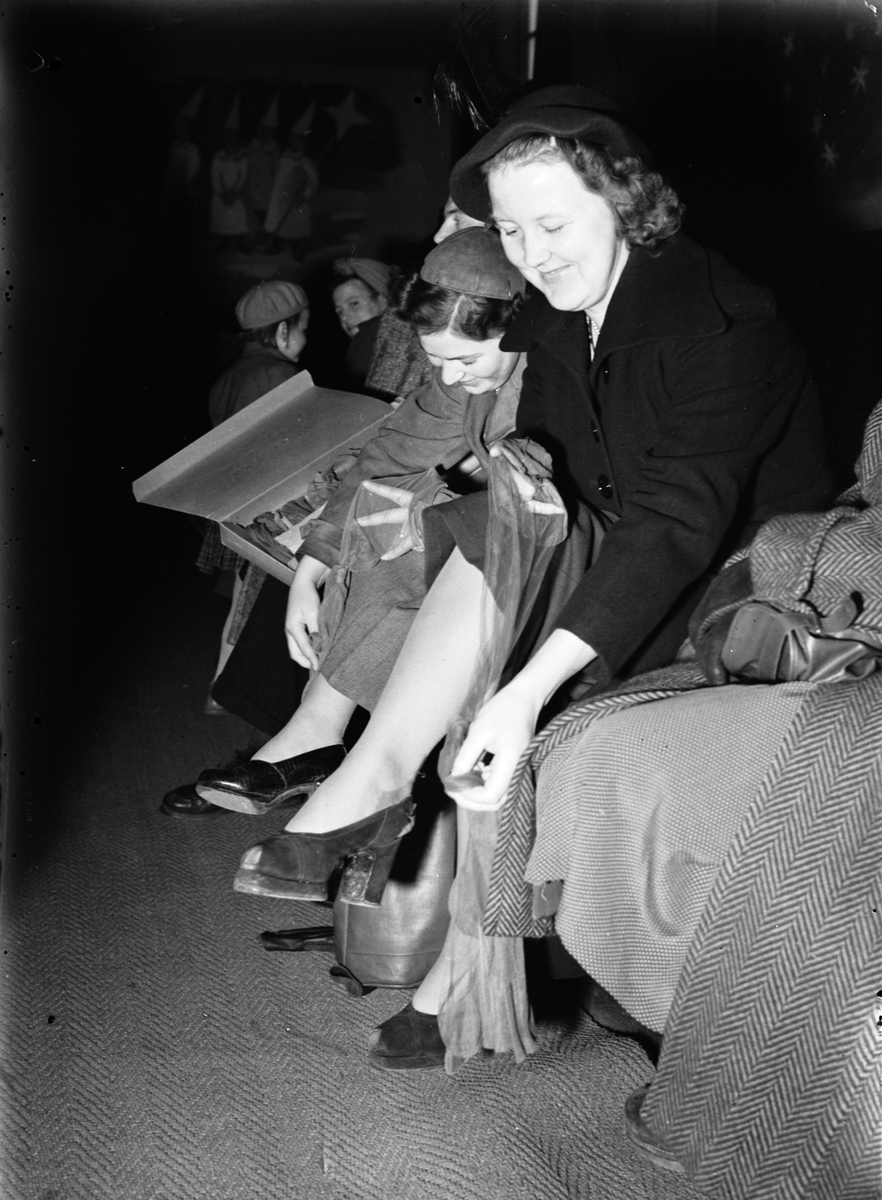 Strumpauktion (nylonstrumpor klubbas bort). Den 4 maj 1950