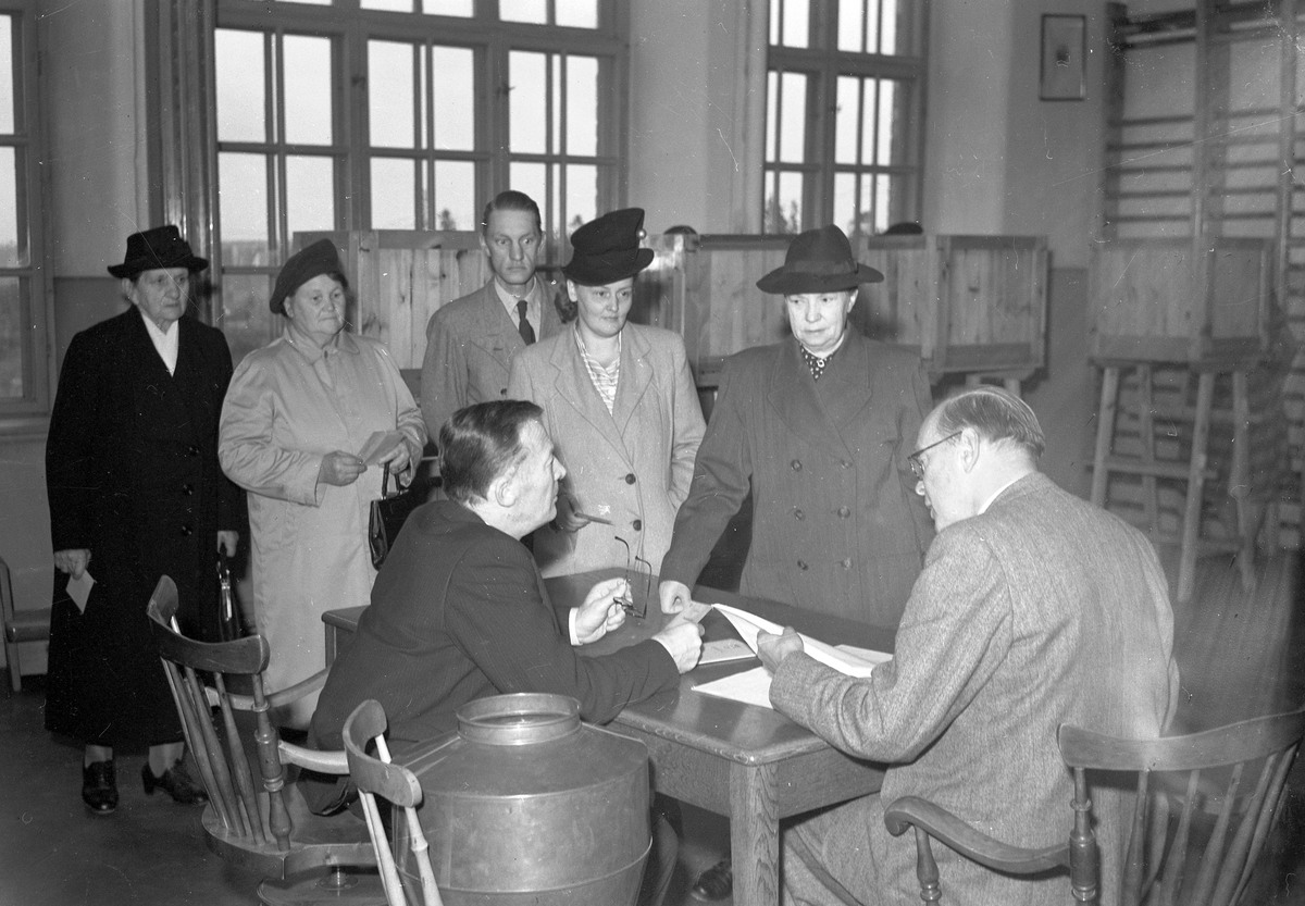 Från valdagen den 14 september 1946. Inne i röstlokalen