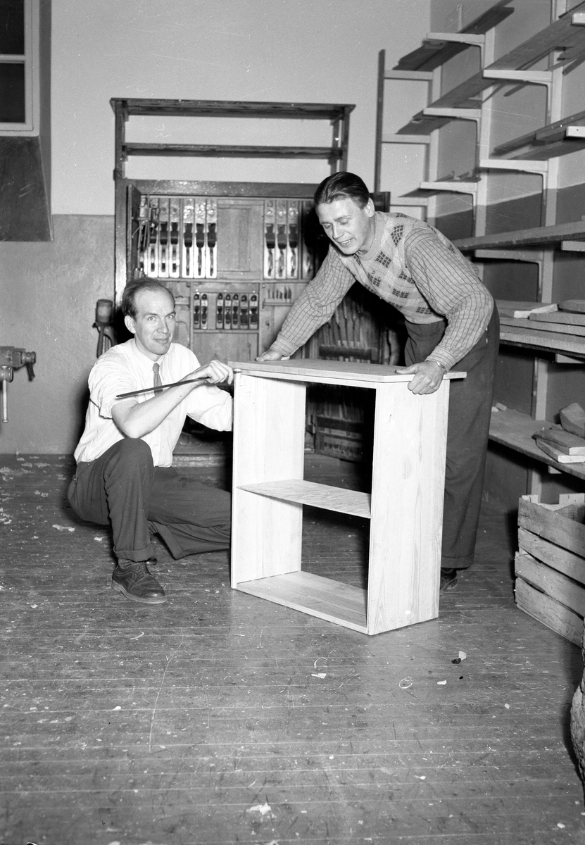 Brynässkolan avslutning. Reportage från slöjdsalen (manlig). Maj 1952.