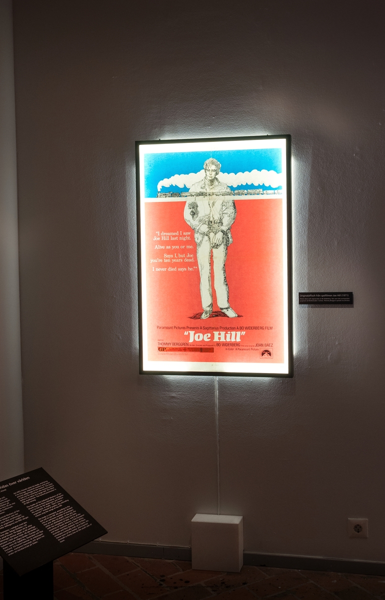 Utställningen "Joe Hill - martyren från Gävle" som visades på Länsmuseet Gävleborg under 2015.