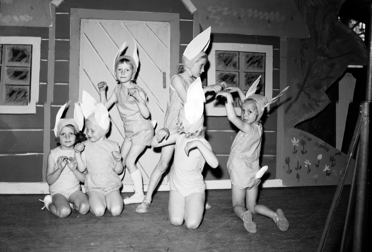 Titel: Emy Ågren. "Prinsessan Snövit" repetition till baletten, Furuviksbarnen. Den 2 juli 1950