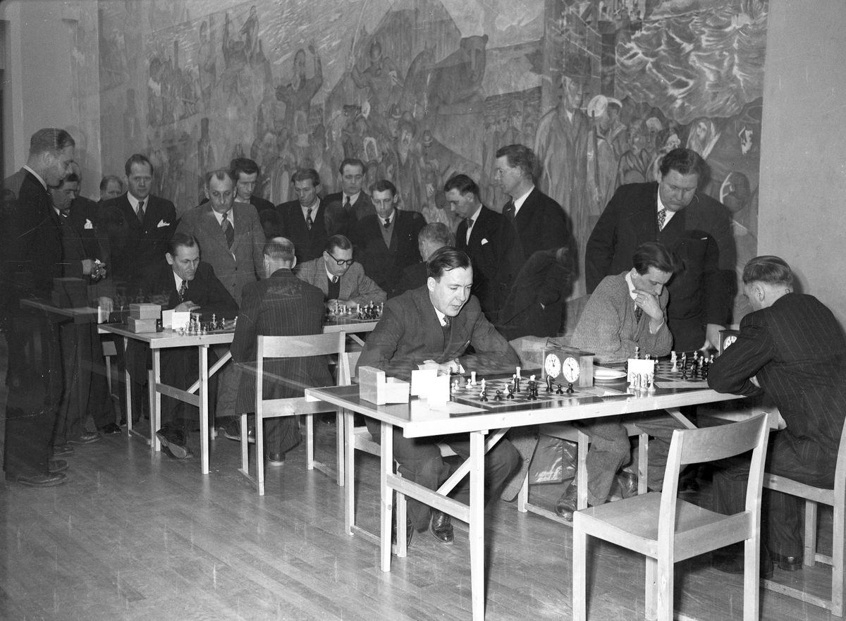 Titel: Schackturnering i Folkets hus den 19 mars 1950.