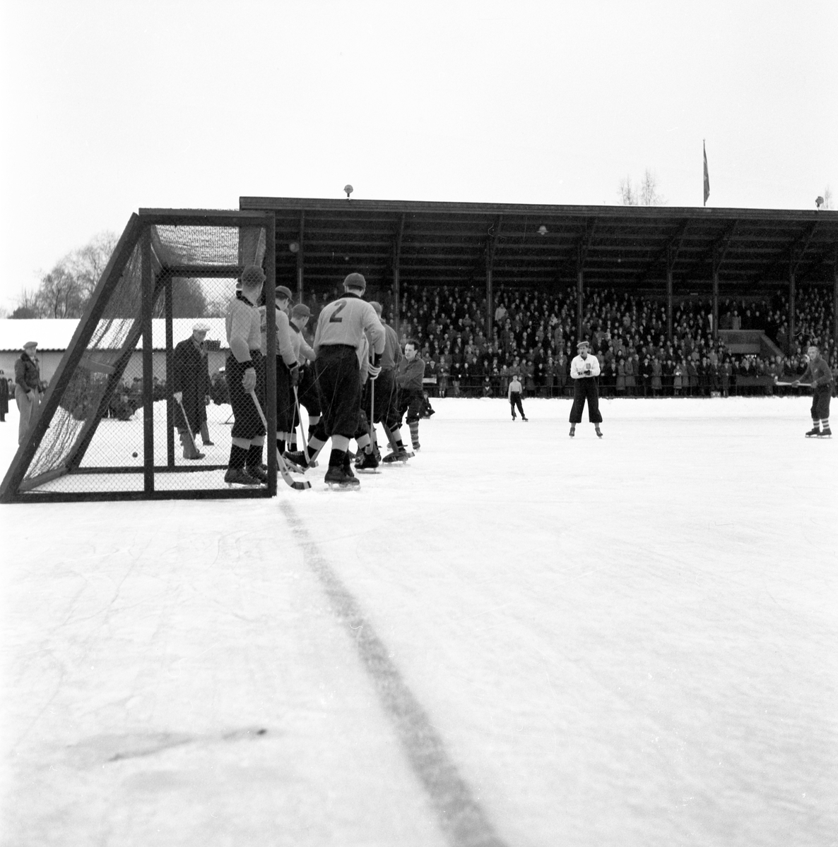 Titel: Bandymatch Forsbacka - Edsbyn. 3 februari 1952.
