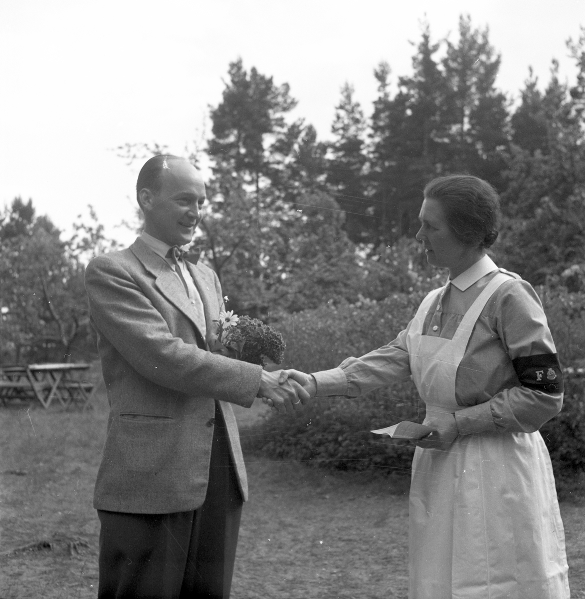 Rörbergs koloni, reportage. Penningsumma emottages av Lions Tivoli. 24 juni 1952.