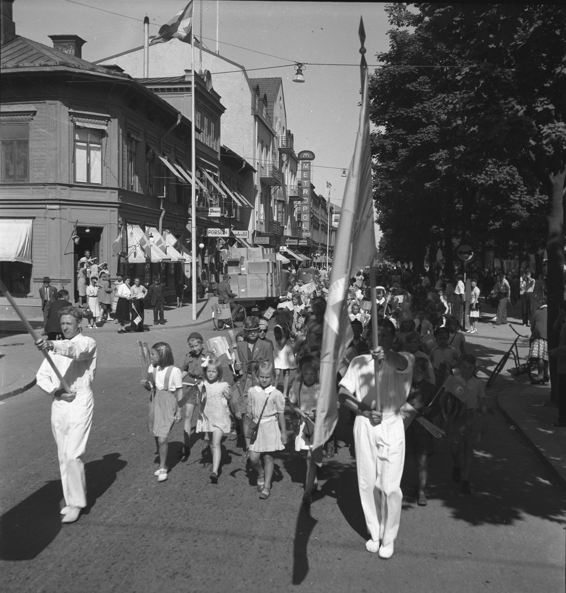 Gävleutställningen 1946 vid Gävletravet. På väg till utställningen