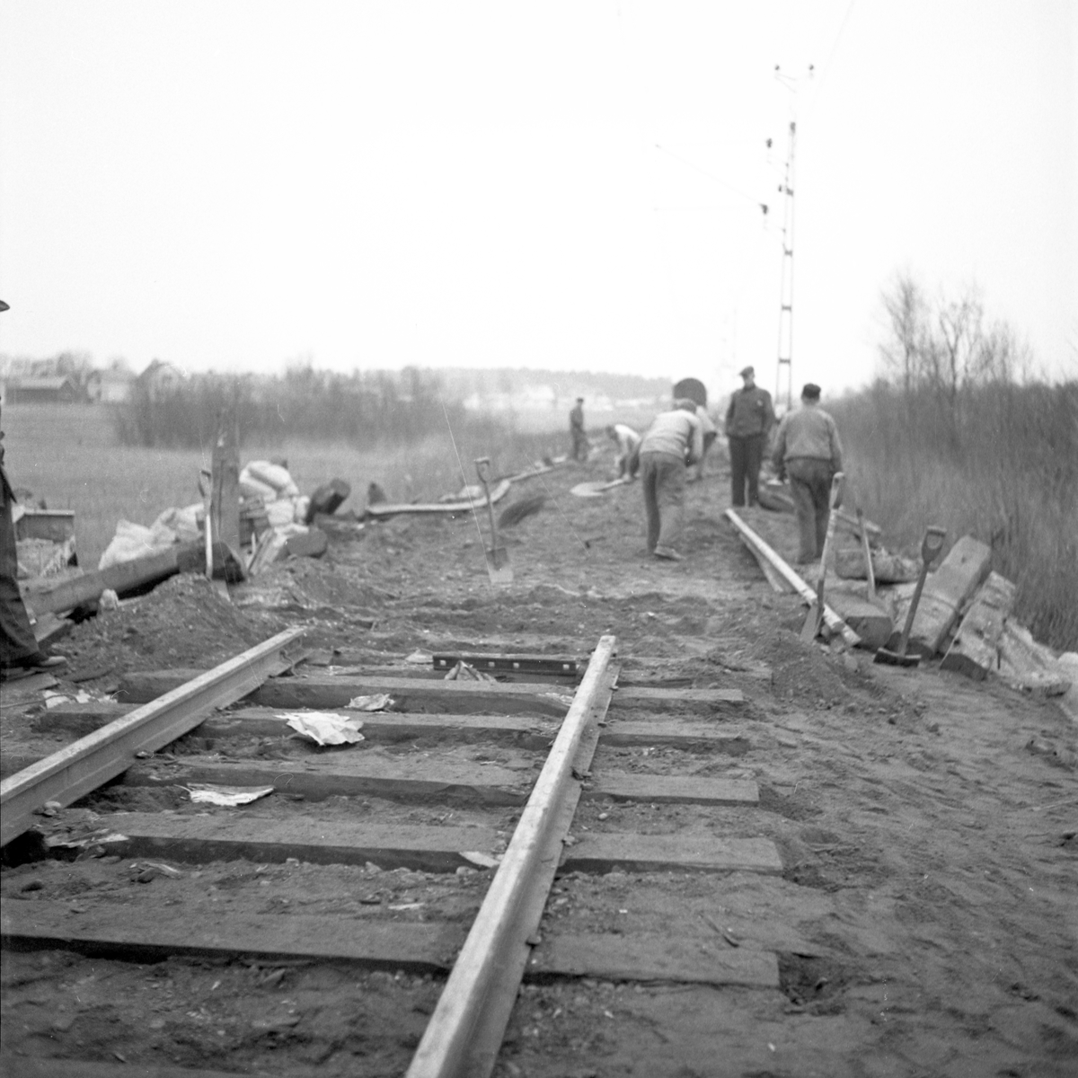 Titel: Tågolycka på linjen Gävle-Skutskär. Den 26 november 1949