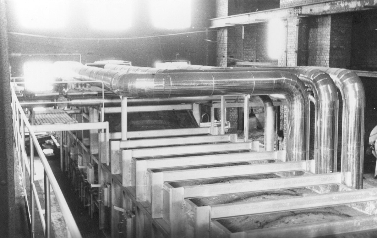 Överdelen av nya götverksugnen, sedd ovanifrån. Den nya ugnen togs i bruk 1957 och användes t o m nedläggningen av götvalsverket 1981. Den stod i hyttan.
