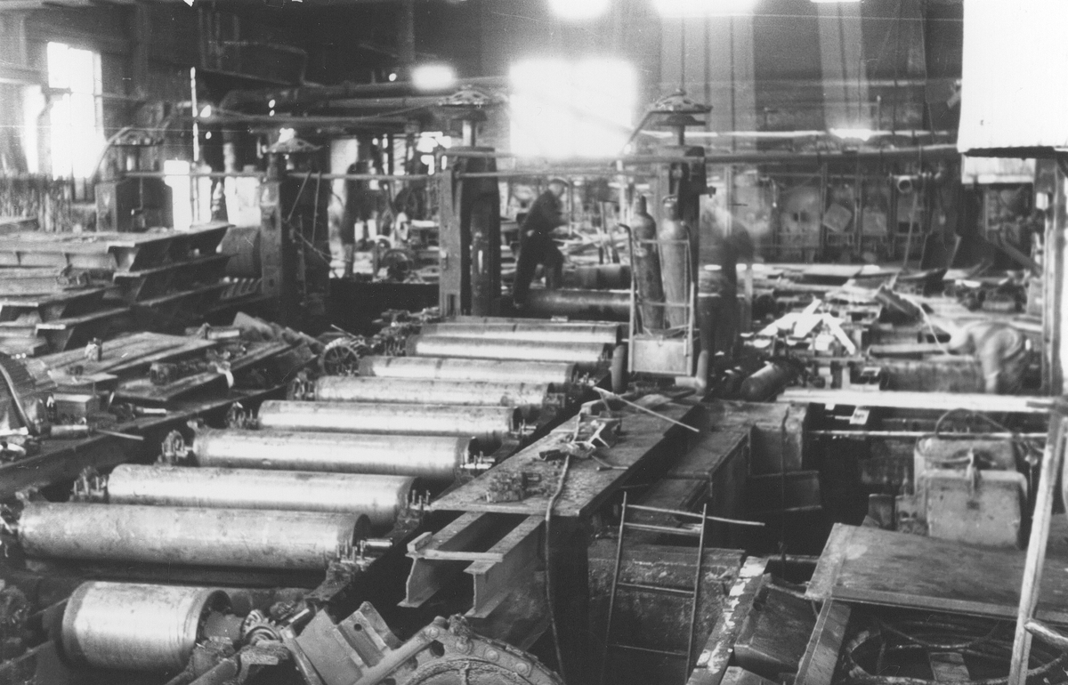 Reparationsarbete i götverket. I förgrunden ses vickbordet.