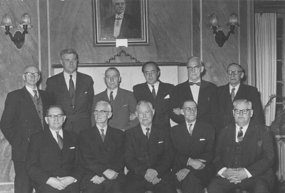 Omkring jul varje år samlades företagsnämnden, årets pensionärer och de som fått pris i tävlingen "Min idé" (inlämnade förslag på förbättringar, lösningar m m till järnverksledningen). Främre raden från vänster: Gunnar Larsson, Pelle Eklöf, Emil Uggla, Rolf Lindberg (överingenjör), Isidor Aurosell. Bakre raden från vänster: Kalle Berggren, Hardar Skog, Robert Jansson, Ture Wickholm, Gustaf Borg och Gunnar Hult.