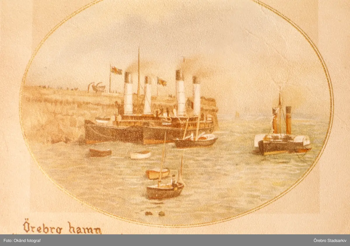 Vykort på Örebro hamn vid slutet av 1880-talet